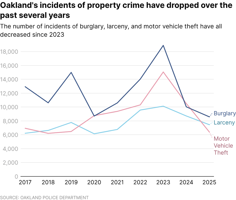 Crime has long been part of Oakland’s identity. In 2023, the city was deemed “in crisis” by the local NAACP, with high rates of violent crimes like carjackings and robberies tarnishing its reputation. However, a deeper look into the numbers reveals a positive trend: violent crime dropped by 25% in 2024, with significant decreases in car thefts, carjackings, and commercial burglaries. Law enforcement initiatives, such as a budget allocation for tackling illegal dumping and enhancing traffic safety, have played a crucial role in this decline. Despite these efforts, public perception lags, as the community’s lived experiences do not always align with the official crime data.